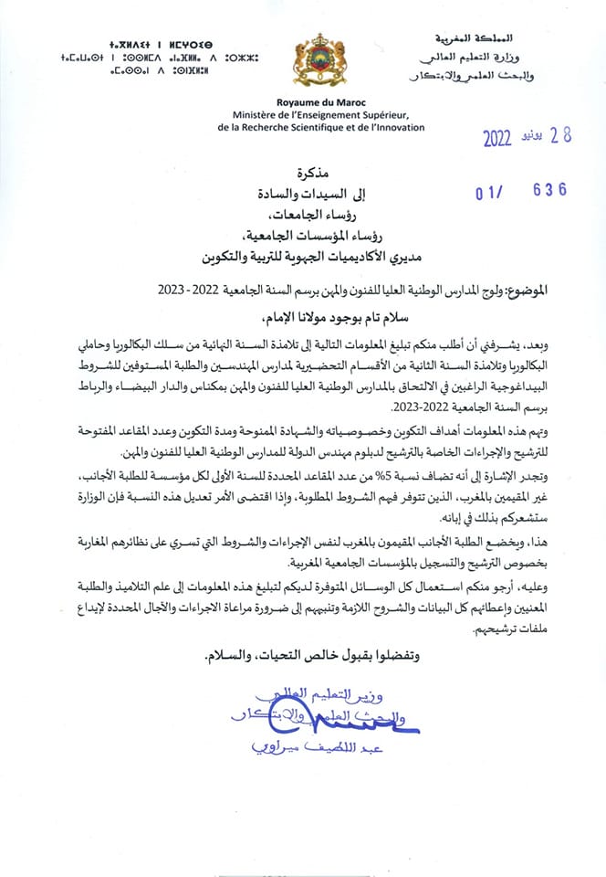ولوج المدارس الوطنية العليا للفنون و المهن برسم السنة الجامعية 2022-2023